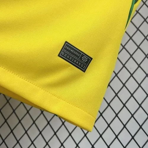 Celebrate football heritage with the Buy Brazil Home 2026 World Cup – Fan Version Jersey, inspired by the legacy of the Brazil national football team on the world’s biggest stage, the FIFA World Cup 2026. Designed in Brazil’s iconic canary yellow, this jersey features refined green accents and a modern fit that captures tradition with a contemporary edge. Crafted from lightweight, breathable fabric, it offers all-day comfort whether you’re cheering from the stands, watching with friends, or playing a casual match. Moisture-wicking technology keeps you cool under pressure, while the durable stitching ensures long-lasting wear. The fan version delivers authentic match-day style with a relaxed silhouette—perfect for everyday use. Finished with the classic crest and premium detailing, this jersey is a must-have for true Seleção supporters. Show your passion, wear the colors with pride, and back Brazil in style throughout the 2026 World Cup and beyond.
